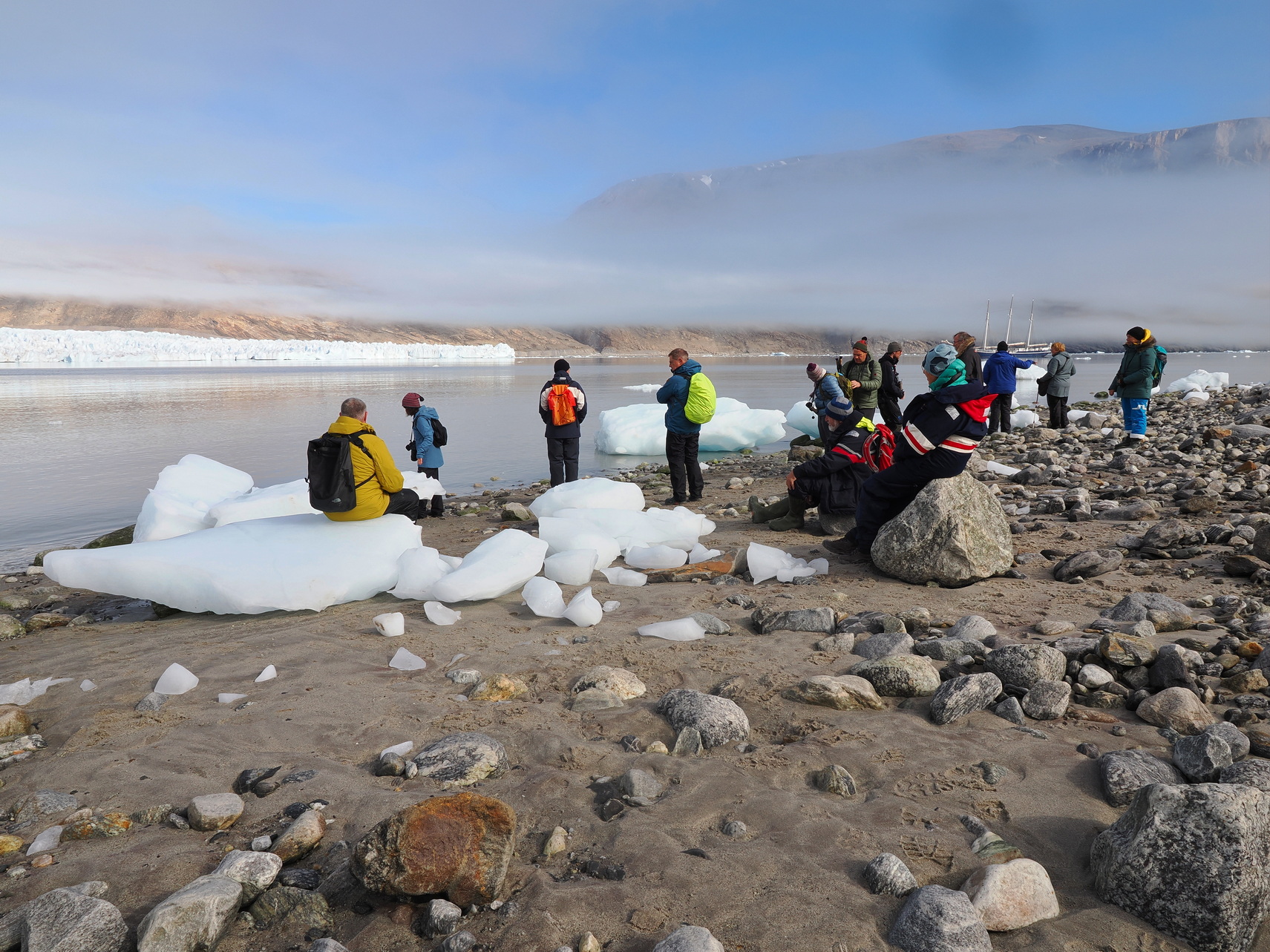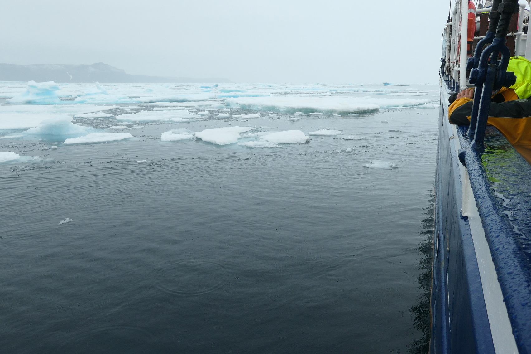 Regen, Nebel und kurze sonnige Phasen und Temperaturen zwischen 2-8°C. Sobald genügend Wind aufkommt lässt Kapitän Joachim Segel setzen – volle Fahrt mit bis zu 8 Knoten (15km/h).