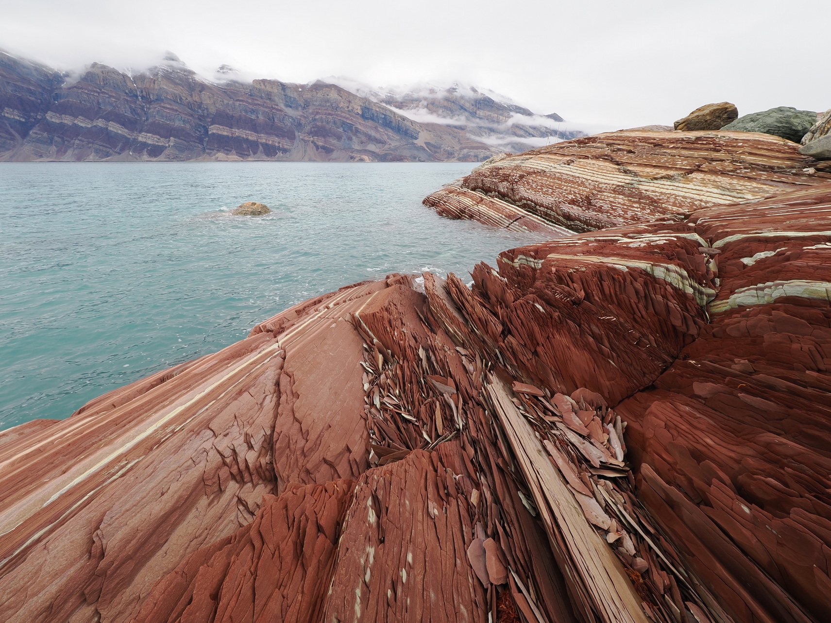 Sehr eindrücklich sind die vergänglichen Kunstwerke der kleinen und grossen Eisberge sowie die wunderschönen geologische Strukturen des Urgesteins. Kaum zu glauben dass Grönland zu Beginn der Kontinentalverschiebungen einmal auf der Südhalbkugel lag!