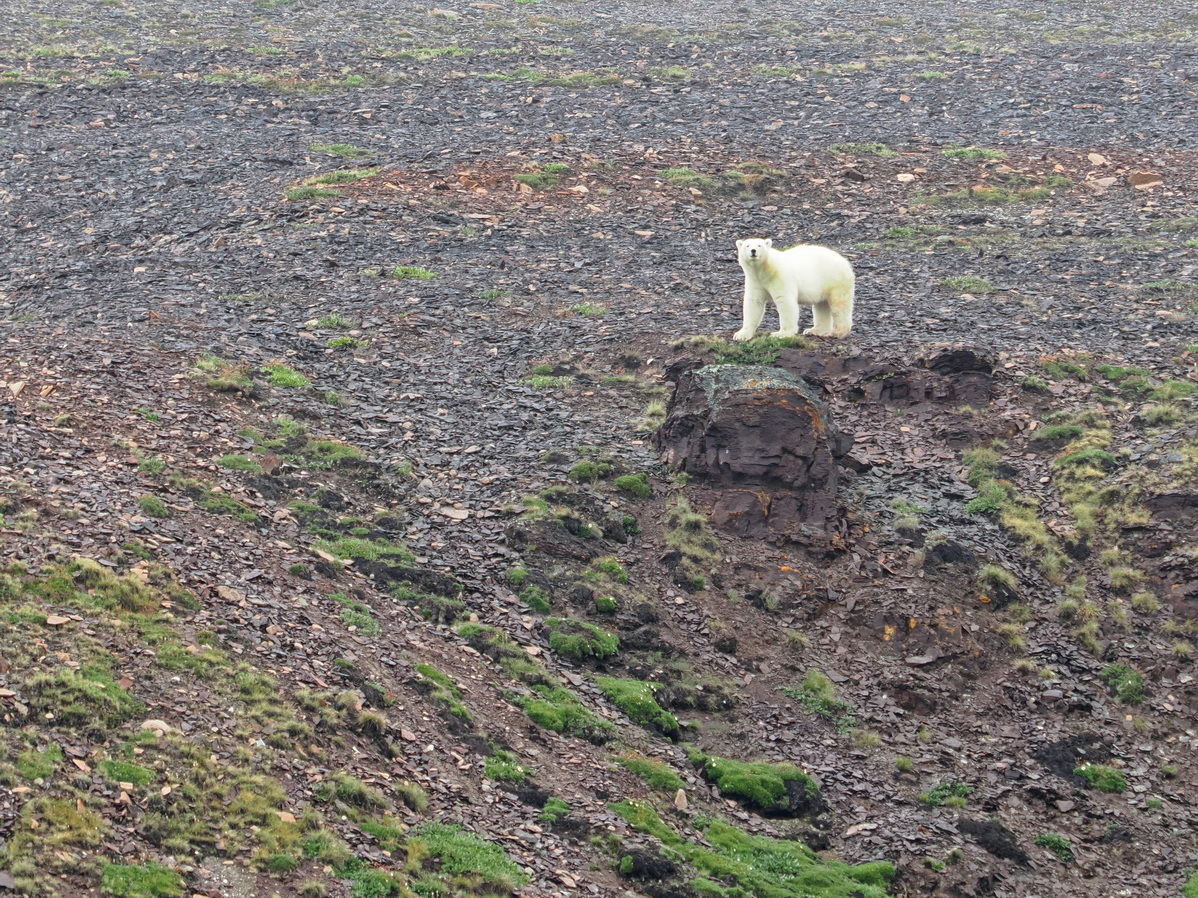 Nach der Kontrolle der Nationalparkgarde „Sirius“ haben wir freie Fahrt in das riesige Fjordsystem. Auf den täglichen Landgängen entdecken wir die vielfältige Natur zu Fuss auf längeren und kürzeren Wanderungen. Wir sind auch hier im Reich der Eisbären – unsere Guides sind bei jedem Ausflug bewaffnet. Die Begegnung an Land könnte gefährlich werden und als wir dann tatsächlich einen weissen Pelz im Schneefeld entdecken wird der Landgang umgehend abgebrochen. Die Beobachtung vom Schiff aus ist sicher und der König der Arktis bleibt ungestört.